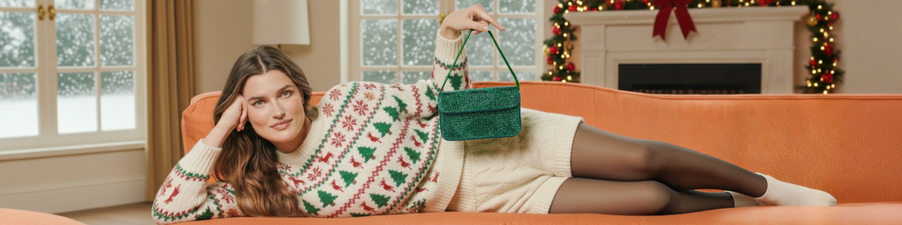 Luxury Handmade Beaded Shoulder Bag – Green Geometric Pattern Purse